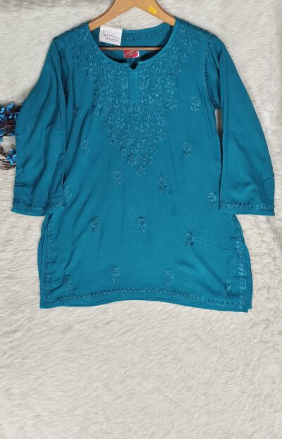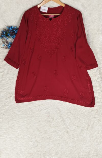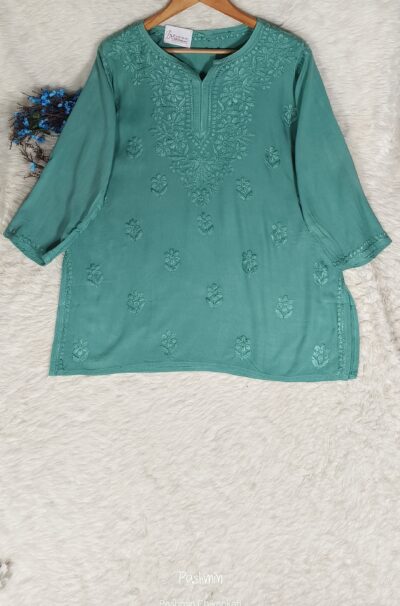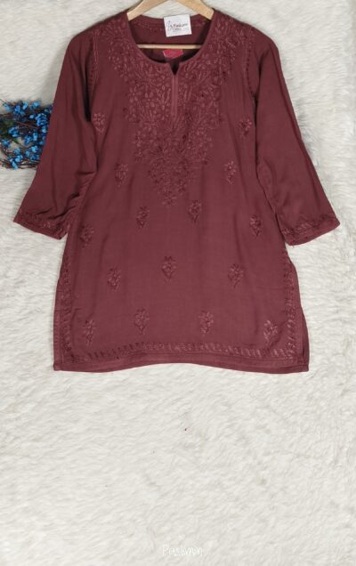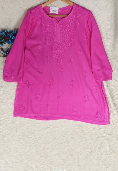 Chikankari Modal Cotton Tone To Tone Short Kurta