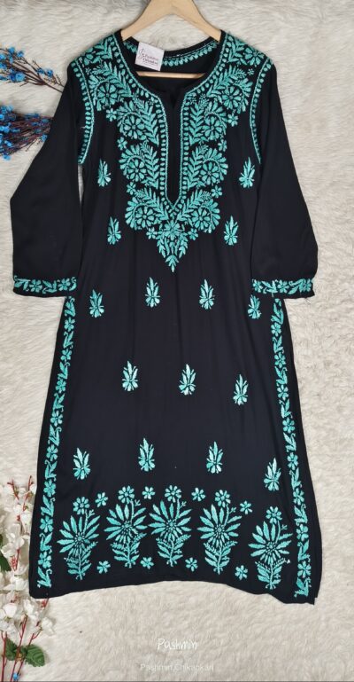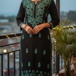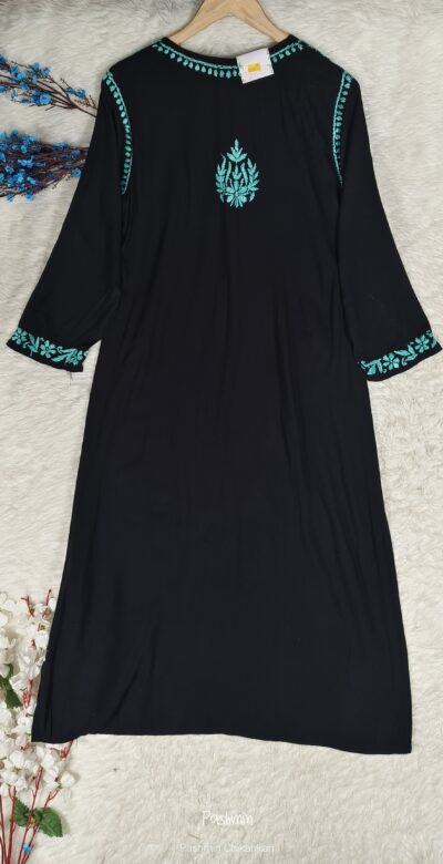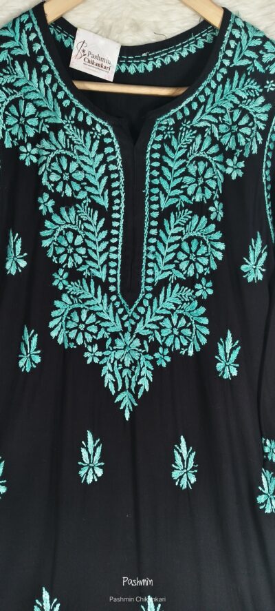 Black Chikankari Modal Cotton Kurta With Sea Green Embroidery