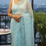 Blue Chikankari Georgette Tepchi Work Saree