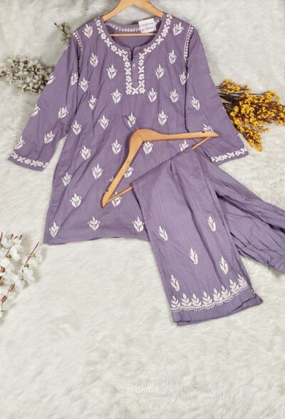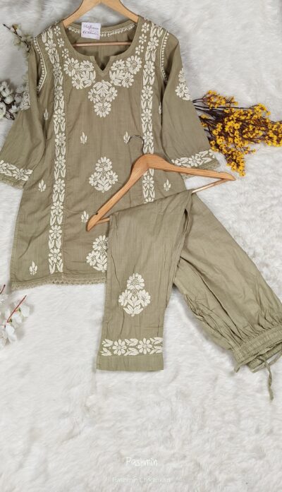Chikankari 3D Work Linen Cotton Co-Ord Set