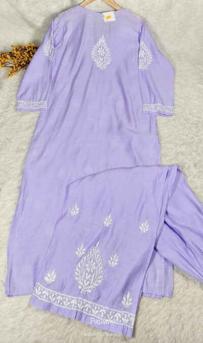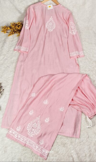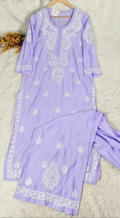 Chikankari Chanderi Pastel Shade Kurta Pant Set