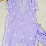 Chikankari Chanderi Pastel Shade Kurta Pant Set
