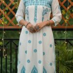 Chikankari Color on White Short Kurta with Pintex Work