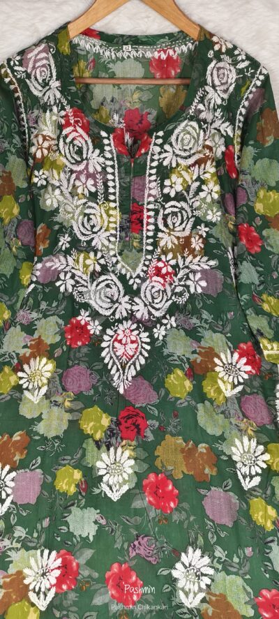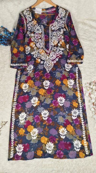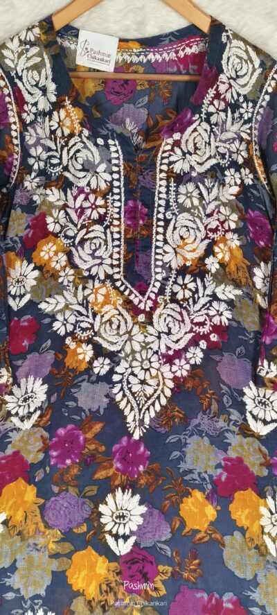Chikankari Cotton Multi Color Flower Printed Kurta