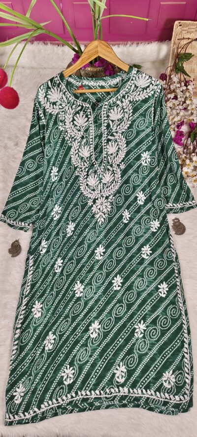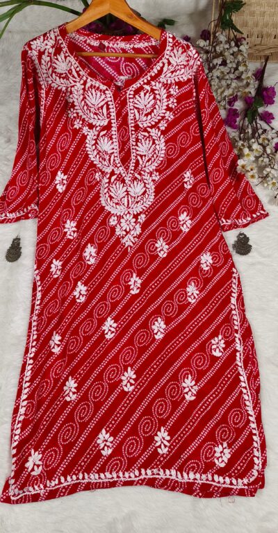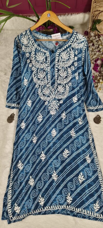 Chikankari Leheriya Print Modal Cotton Kurta