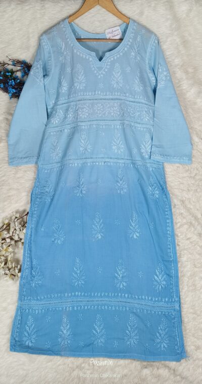 Chikankari Mid Lace Tone To Tone Ombre Shade Cotton Kurta