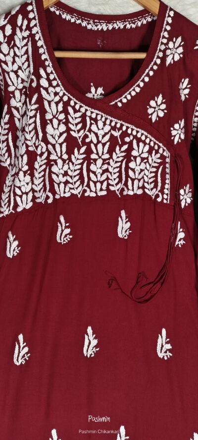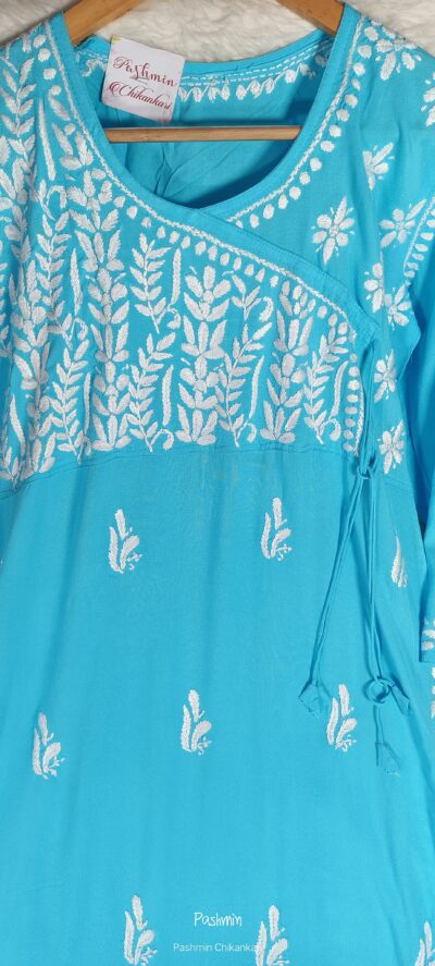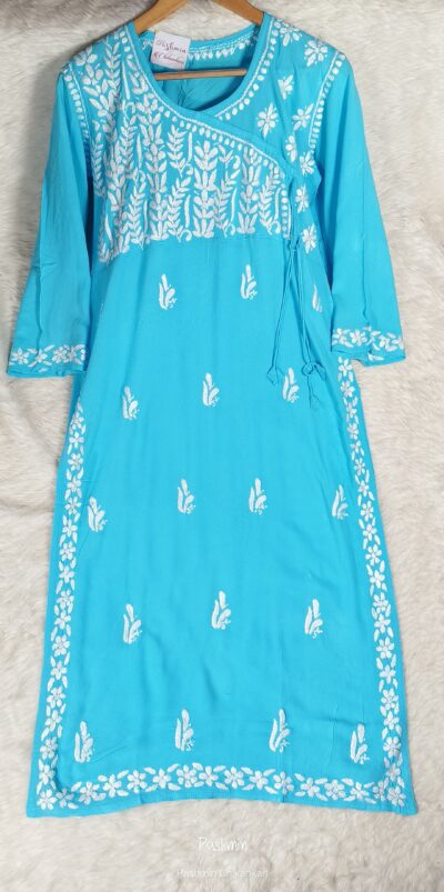 Chikankari Modal Cotton Plus Size Angrakha Style Kurta