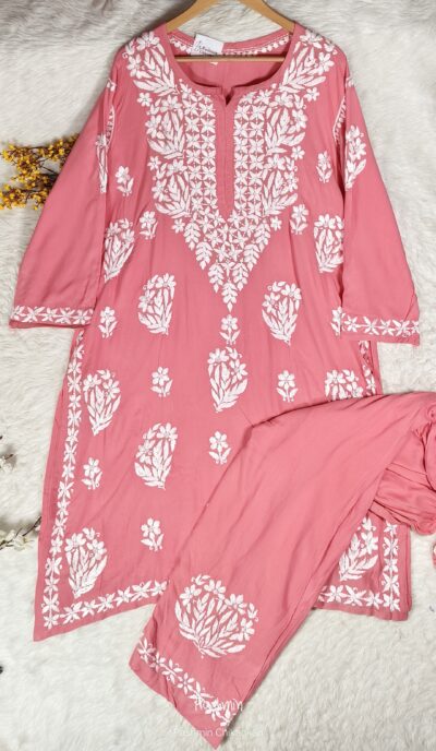 Chikankari Modal Cotton Plus Size Kurta Pant Set
