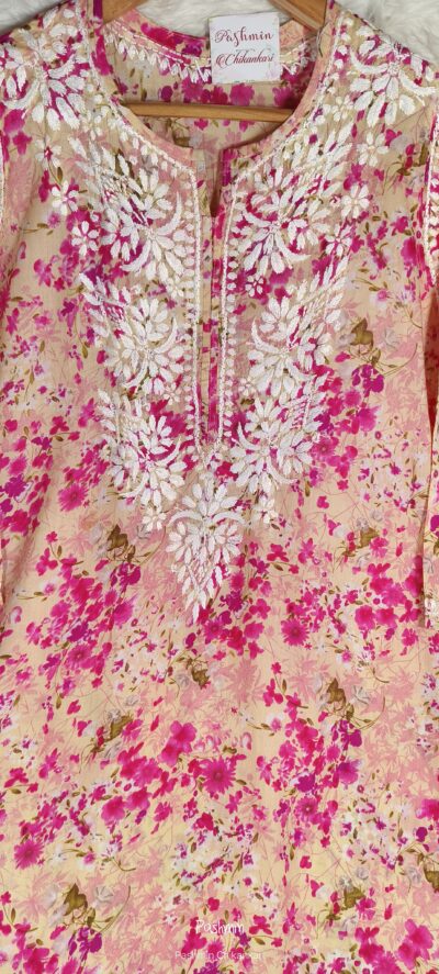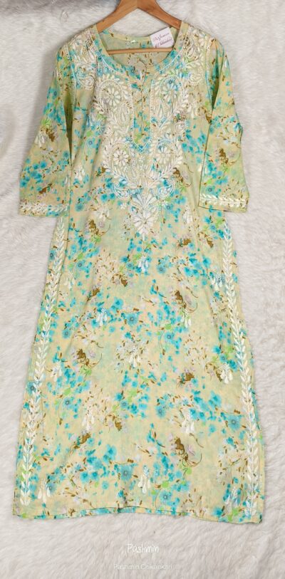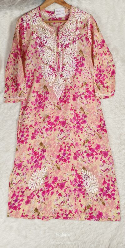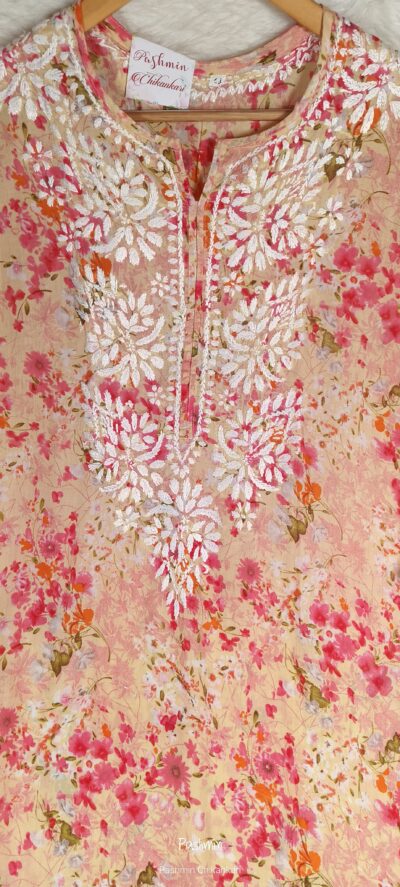 Chikankari Mulcotton Multi- Printed Ghaaspatti Kurta