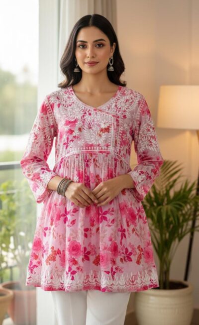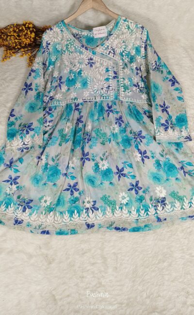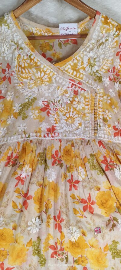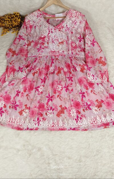 Chikankari Mulcotton Printed Frock Style Angrakha Top