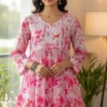 Chikankari Mulcotton Printed Frock Style Angrakha Top