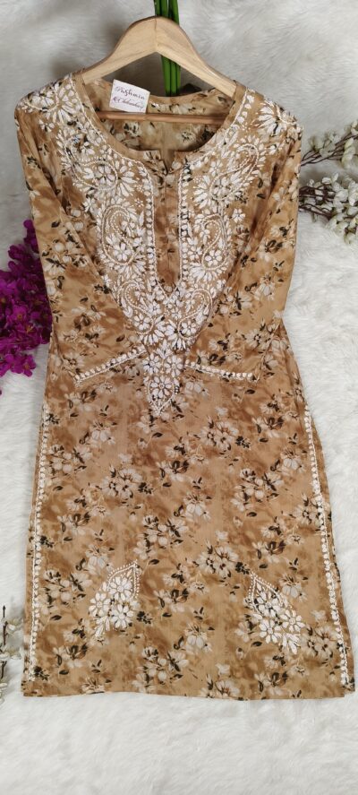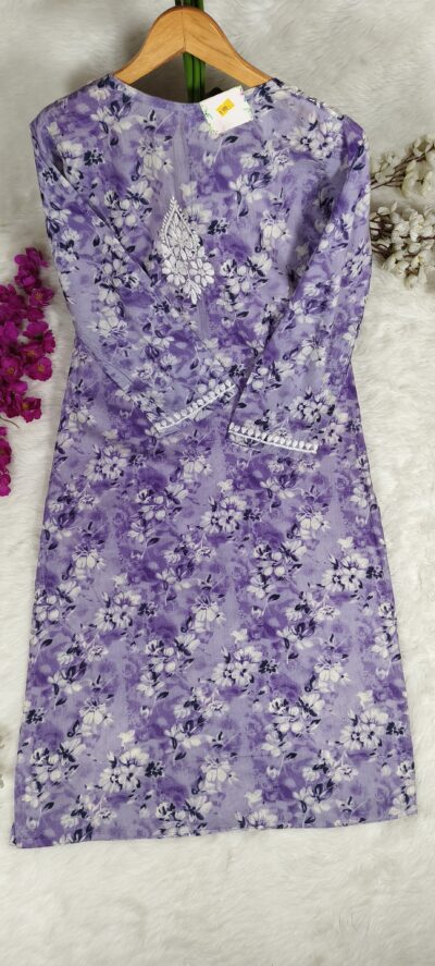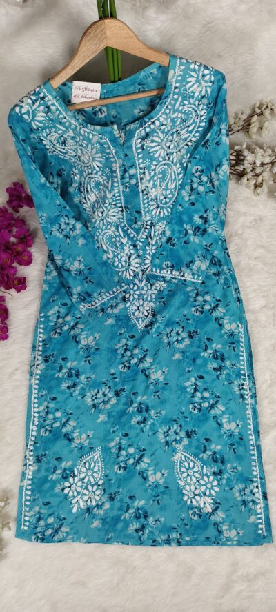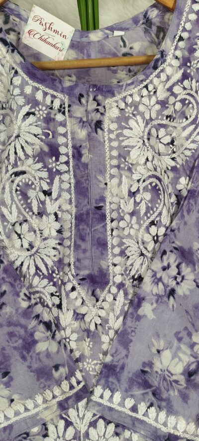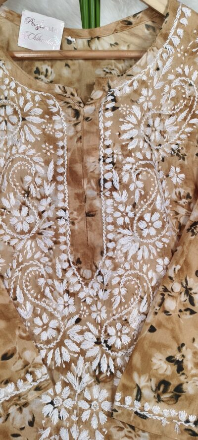 Chikankari Self Tone Floral Print Mulcotton Kurta