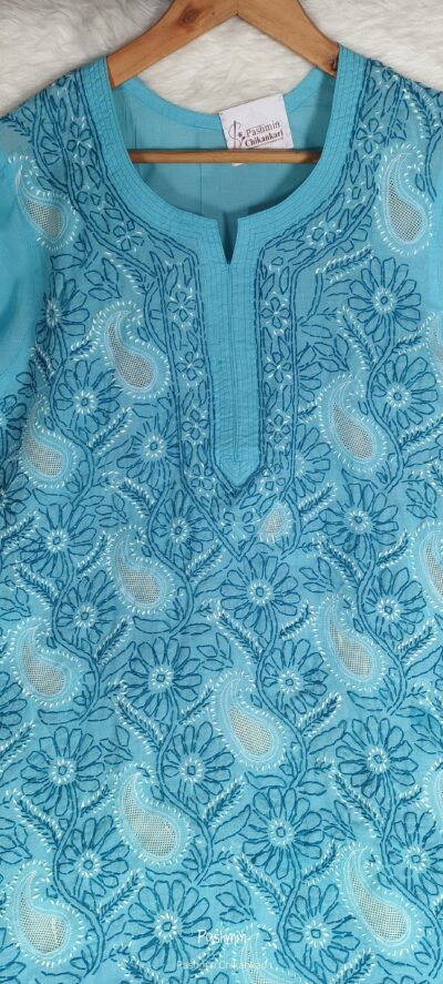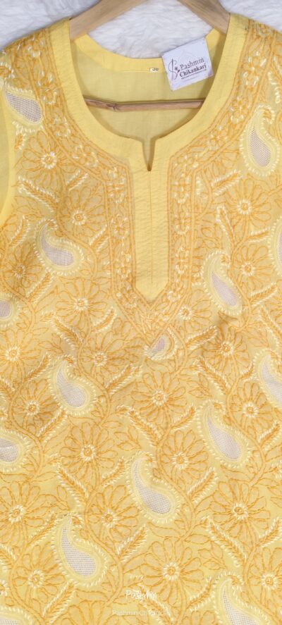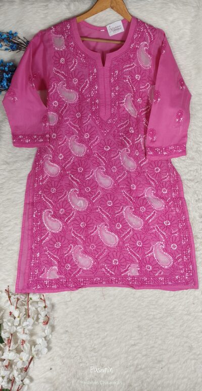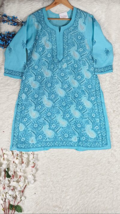 Chikankari Voile Cotton Shadow Work Jaal Work Short Kurta