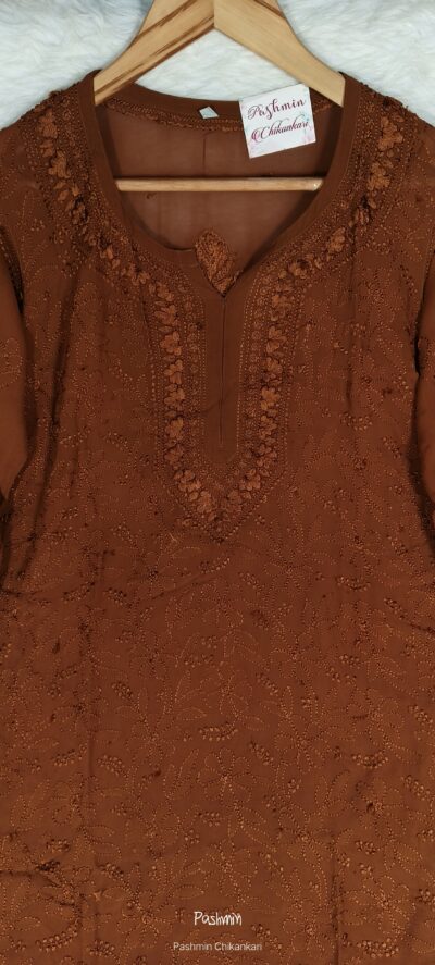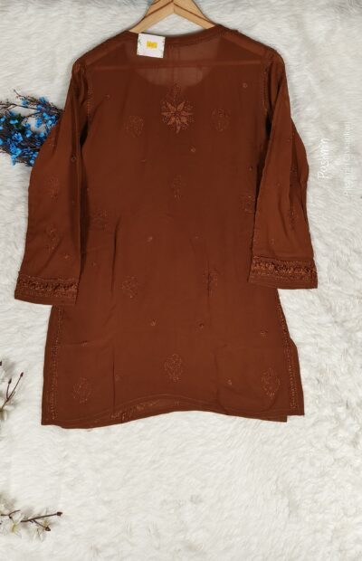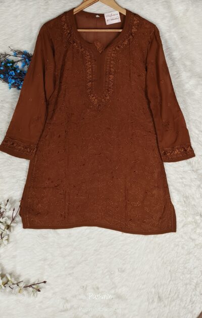 Chocolate Brown Chikankari Viscose Shadow Work Top