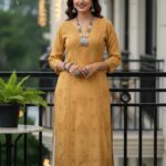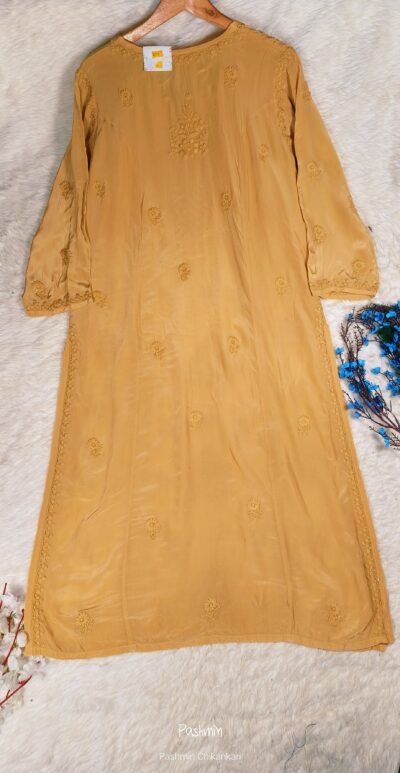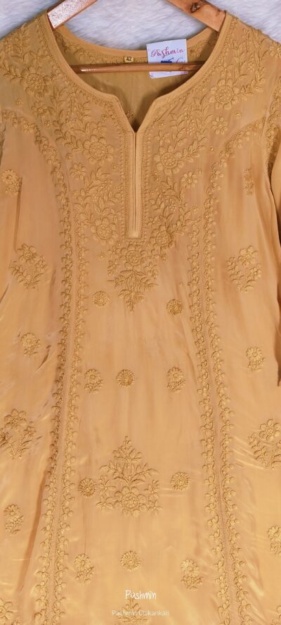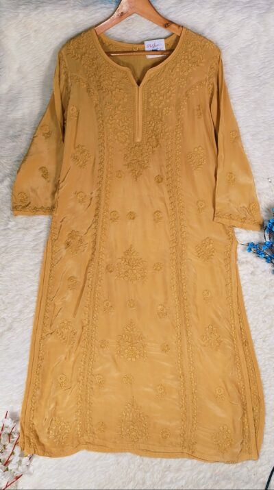 Golden Brown Chikankari Crape 3 Panel Kurta With 3D Work