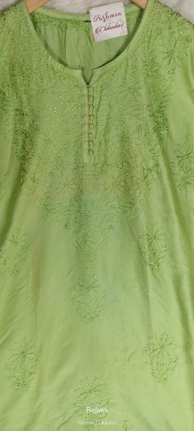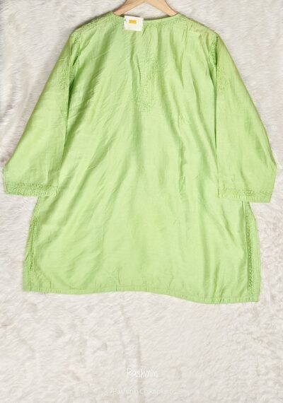 Green Chikankari Chanderi Tone To Tone Top With Front Button