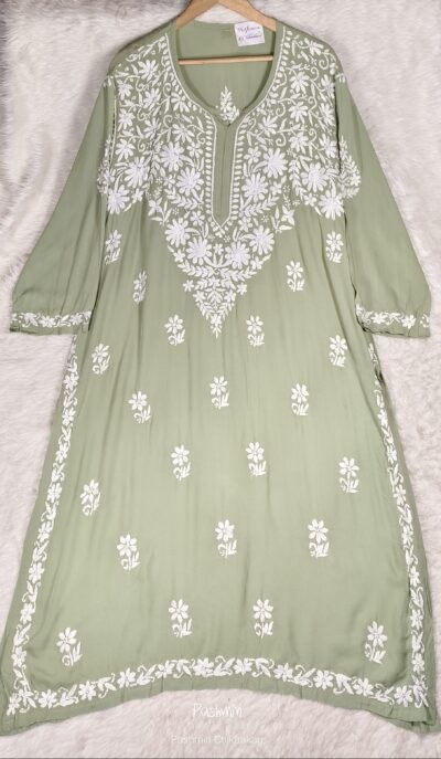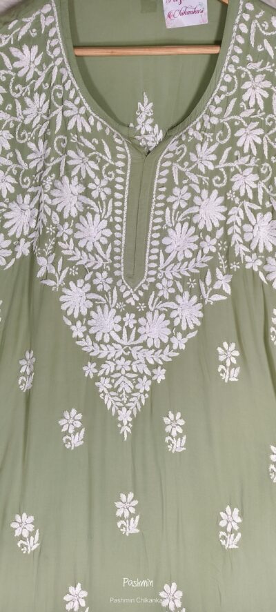Green Chikankari Modal Cotton Plus Size Long Kurta