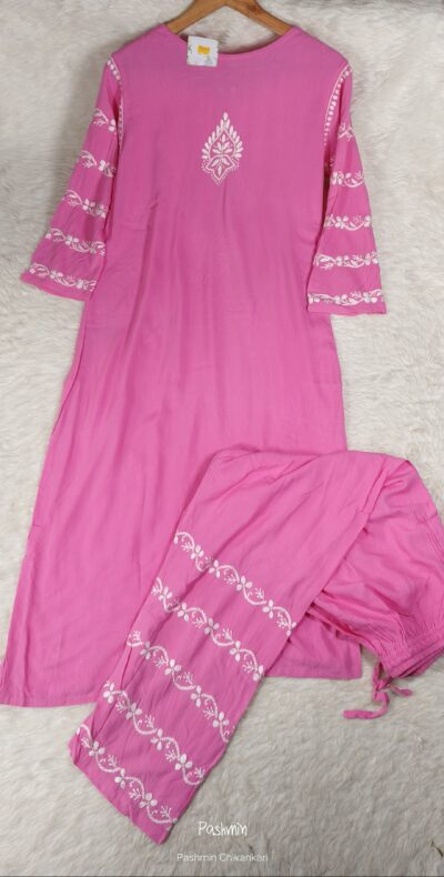 Lotus Pink Chikankari Modal Cotton Layer Kurta Pant Set
