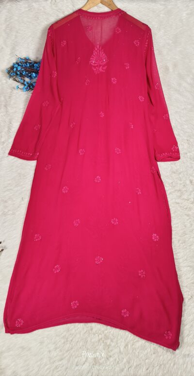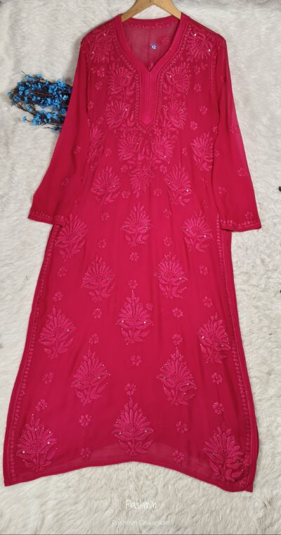 Magenta Chikankari Viscose Ombre Shade Kurta With Mukaish
