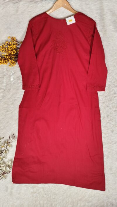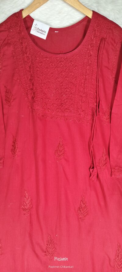 Maroon Chikankari Tone To Tone Angrakha Style Cotton Kurta