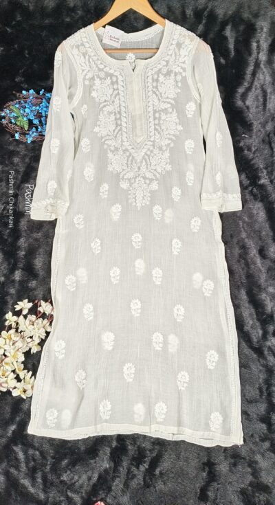 Off White Chikankari MulChanderi Kurta