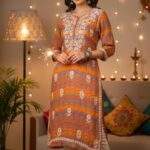 Orange Chikankari Multi Color Cotton Printed Kurta