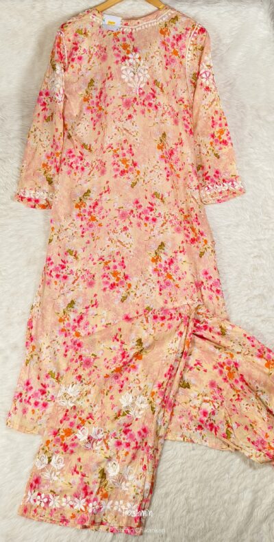 Pink Chikankari Modal Cotton Multi Printed Kurta Pant Set
