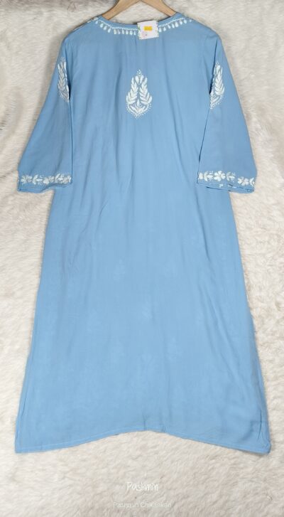 Powder Blue Chikankari Modal Cotton Long Kurta