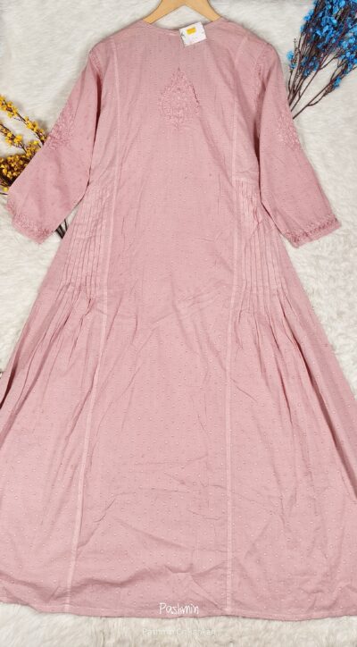 Onion Pink Chikankari Dobby Cotton Kurta Gown
