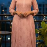 Onion Pink Chikankari Dobby Cotton Kurta Gown