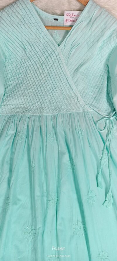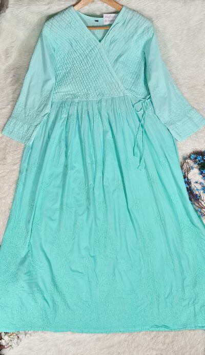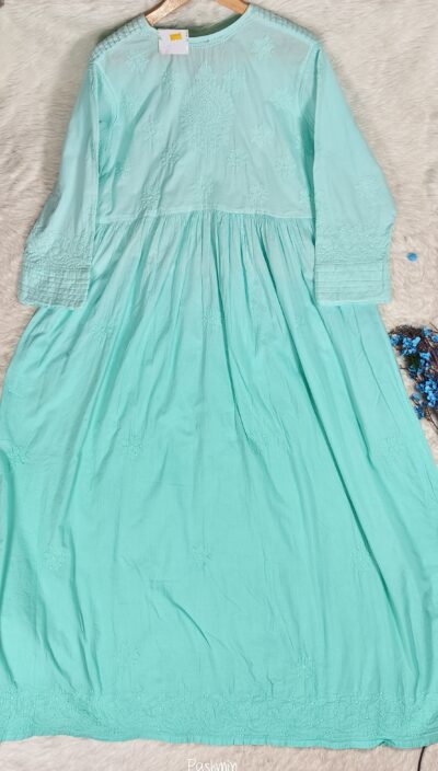 Sea Green Chikankari Pintex Work Ombre Shade Cotton Long Gown