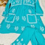 Ferozi Blue Chikankari Modal Cotton Front Pockets Co-Ord Set