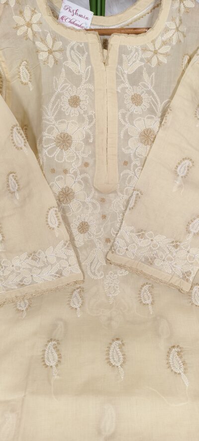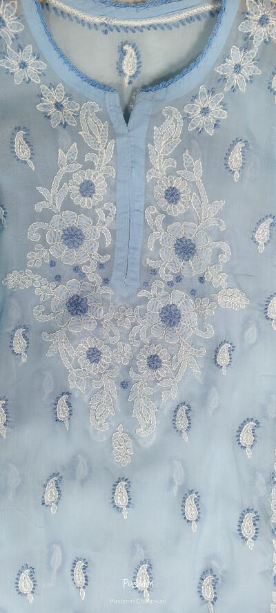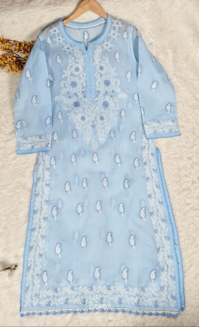 Voile Cotton Front Back Dual Thread Chikankari Kurta