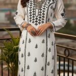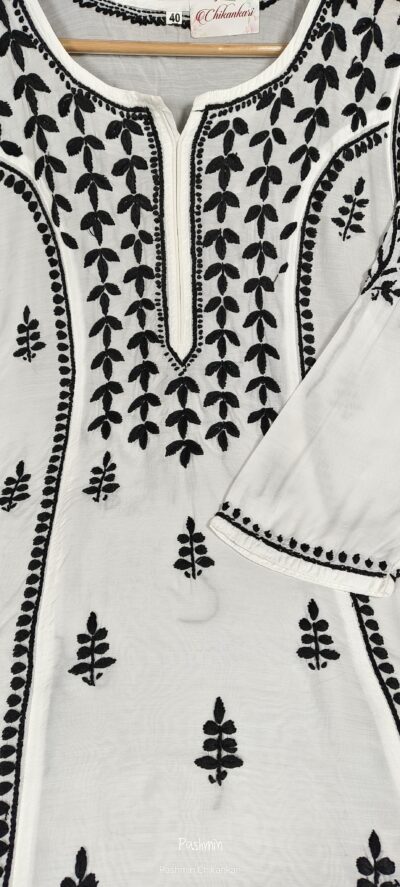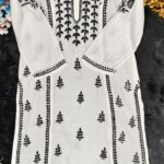 White Chikankari Black Embroidery Muslin 3 Panel Kurta