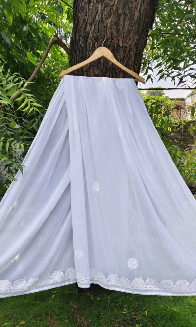 White Chikankari Resham Shadow Border Mulcotton Dupatta