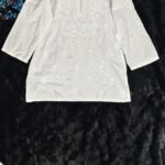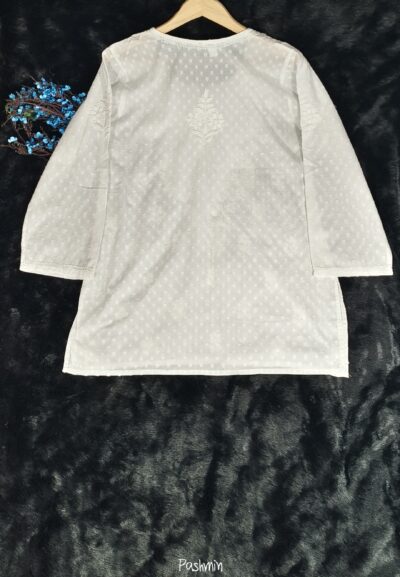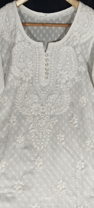 White Chikankari Dobby Cotton Dyeable Front Button Top