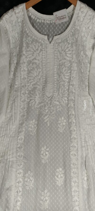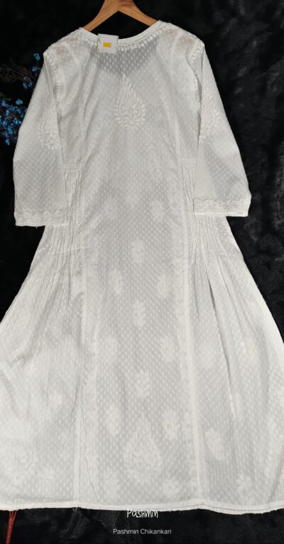 White Chikankari Dobby Cotton Pintex Work Gown