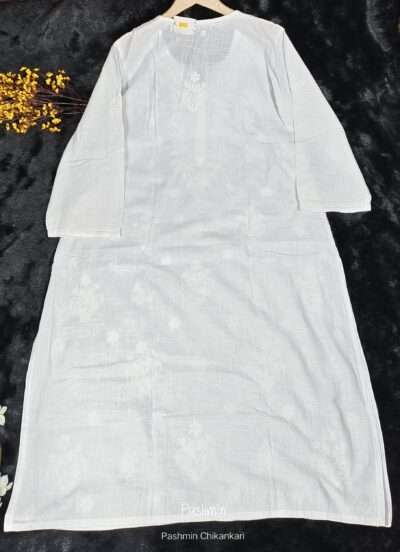 White Chikankari Linen Cotton Dyeable Kurta