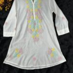 White Chikankari Mulchanderi Lotus Emboridery Top