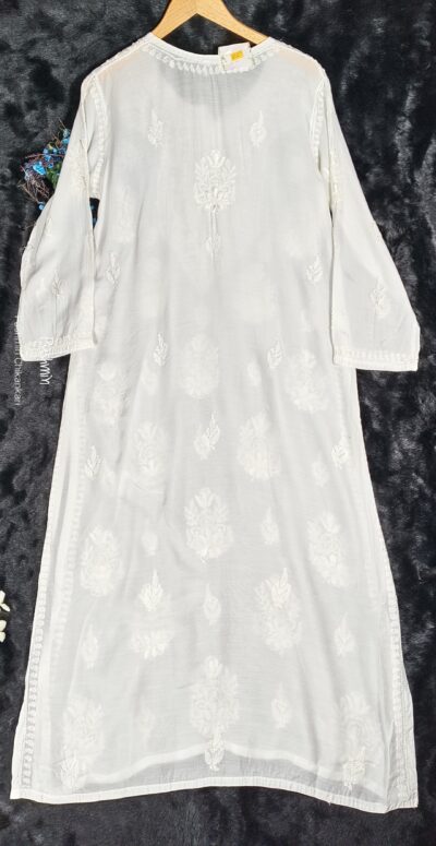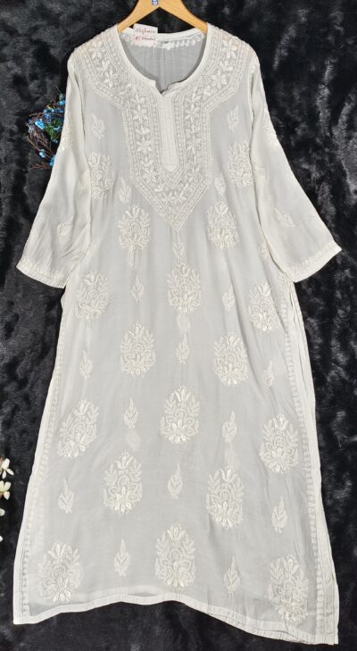White Chikankari Muslin With Resham Dhaga Work Kurta