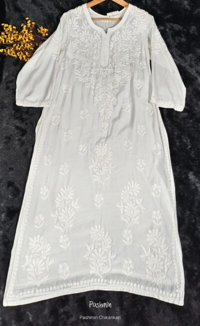 **Storage Tip** : Wrap in muslin and store in a cool, dry place. Pashmin Chikankari thrives when cared for with warmth.