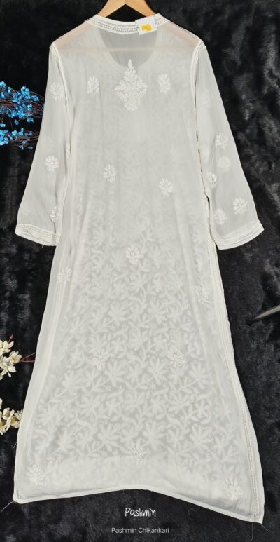 White Chikankari Shadow Work Viscose Heavy Katdana Work Long Kurta