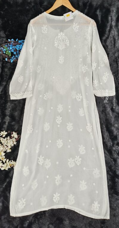 White Chikankari Viscose Neck Boota Kurta