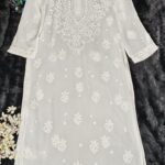 White Chikankari Viscose Neck Boota Kurta