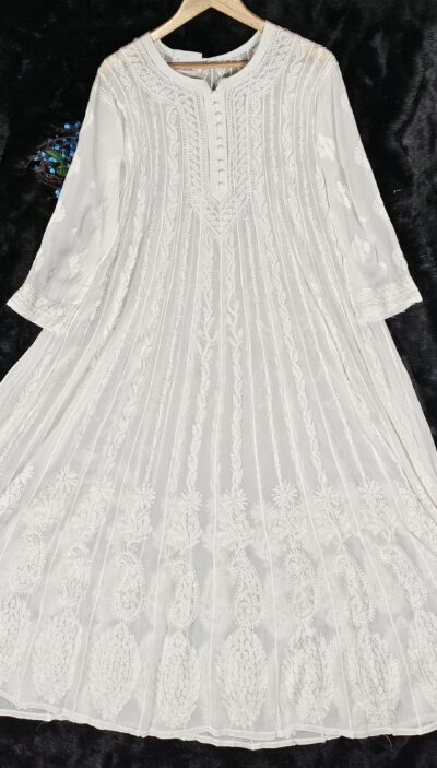 White Chikankari Viscose Shadow Work 28Kali Anarkali Gown