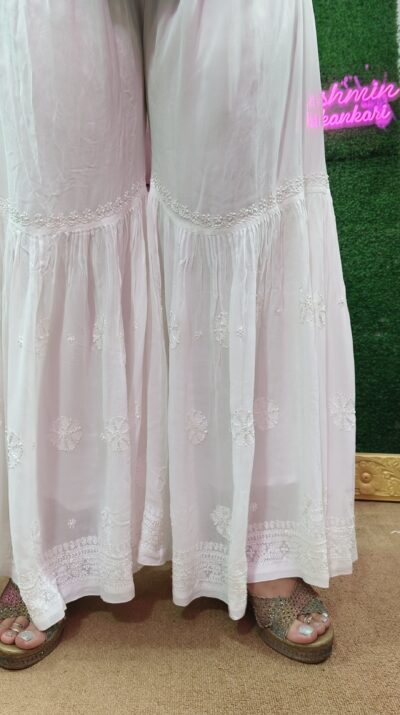 White Chikankari Viscose With Resham Dhaga Embroidery Palazzo