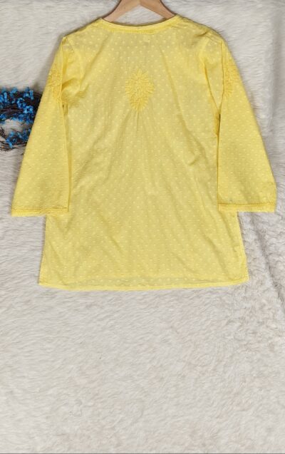 Yellow Chikankari Dobby Cotton Tone To Tone Front Button Top